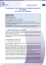 Acest studiu de caz vizează modul în care Institutul pentru Securitate și Sănătate în Muncă (ISSM) a organizat campania „Nu e timp de pierdut” pentru a ajuta la soluționarea problemei cancerului cauzat de condițiile de la locul de muncă. Cu susținerea a peste 220 de organizații și colaborarea cu parteneri din întreaga lume, campania a reușit să aibă un impact global, peste 100 de companii importante semnând angajamentul campaniei pentru a gestiona expunerile de la locul de muncă. Factorii de succes au inclus planificarea atentă și consultarea temeinică, precum și integrarea feedback-ului de la sectoarele-țintă în materialele campaniei. Succesul campaniei se datorează parțial evaluării permanente. Campania acoperă factori de risc majori, precum emisiile de la motoarele diesel, azbestul, radiațiile solare și siliciul cristalin.